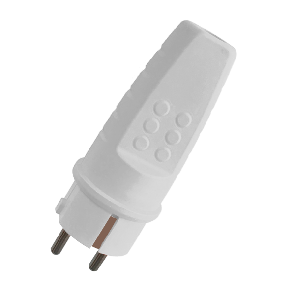 Бял гумиран щепсел шуко 16A с устойчив корпус и сигурен контакт. Идеален за монтаж към електрически кабели и удължители.