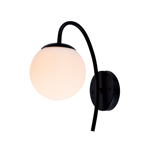 Елегантен аплик с фасунга E27, черно тяло и бяло стъкло. Подходящ за дневна, спалня, коридор и модерни интериори.