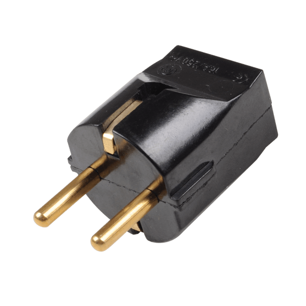 Класически бакелитов щепсел в черен цвят, устойчив на нагряване и износване. Идеален за стандартни електрически инсталации.